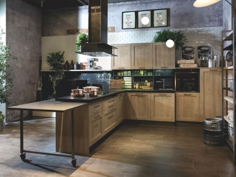 Cucine con penisola perfette se aperte al living. Spesso, nelle abitazioni moderne, la cucina è aperta sul living: Questa proposta, tra le differenti soluzioni con penisola del marchio, facilita le operazioni fra le zone della cucina, garantendo molta praticità. Le cucine classiche ad angolo sono proposte in diverse texture e finiture alla moda e armoniosamente si inseriscono in contesti abitativi diversi.