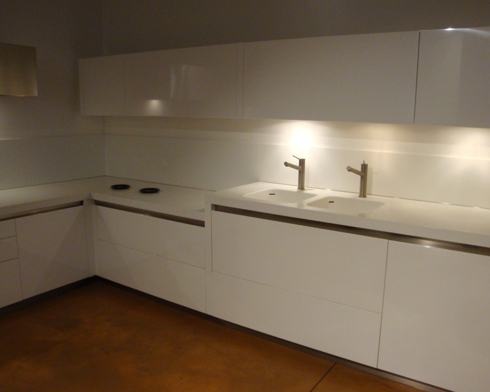 Cucina polimerico lucido davvero particolare molto moderna con maniglia inglobata 2 basi cestoni da 90.