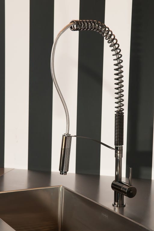 Rubinetteria da cucina o da lavanderia steel di paffoni in acciaio inox con alta canna, girevole, doccetta monogetto estraibile e maniglia e design minimal. Scopri l'intera gamma di miscelatori franke!